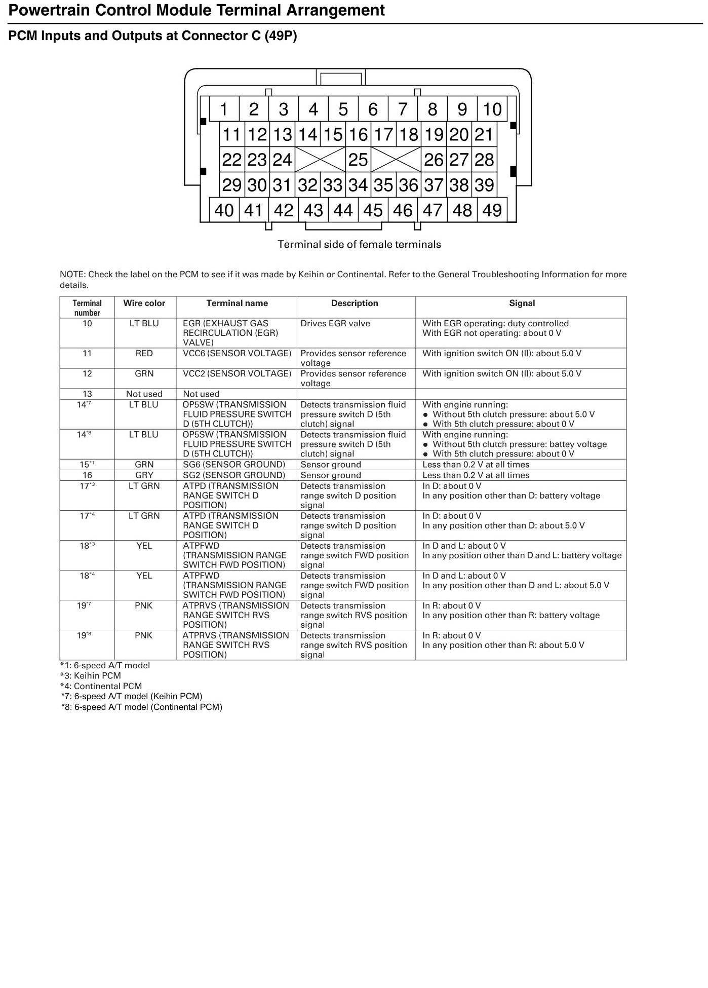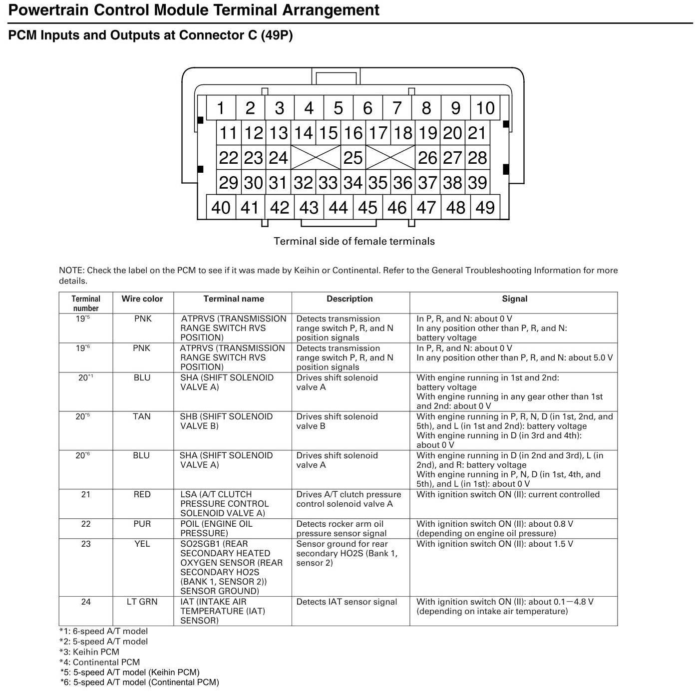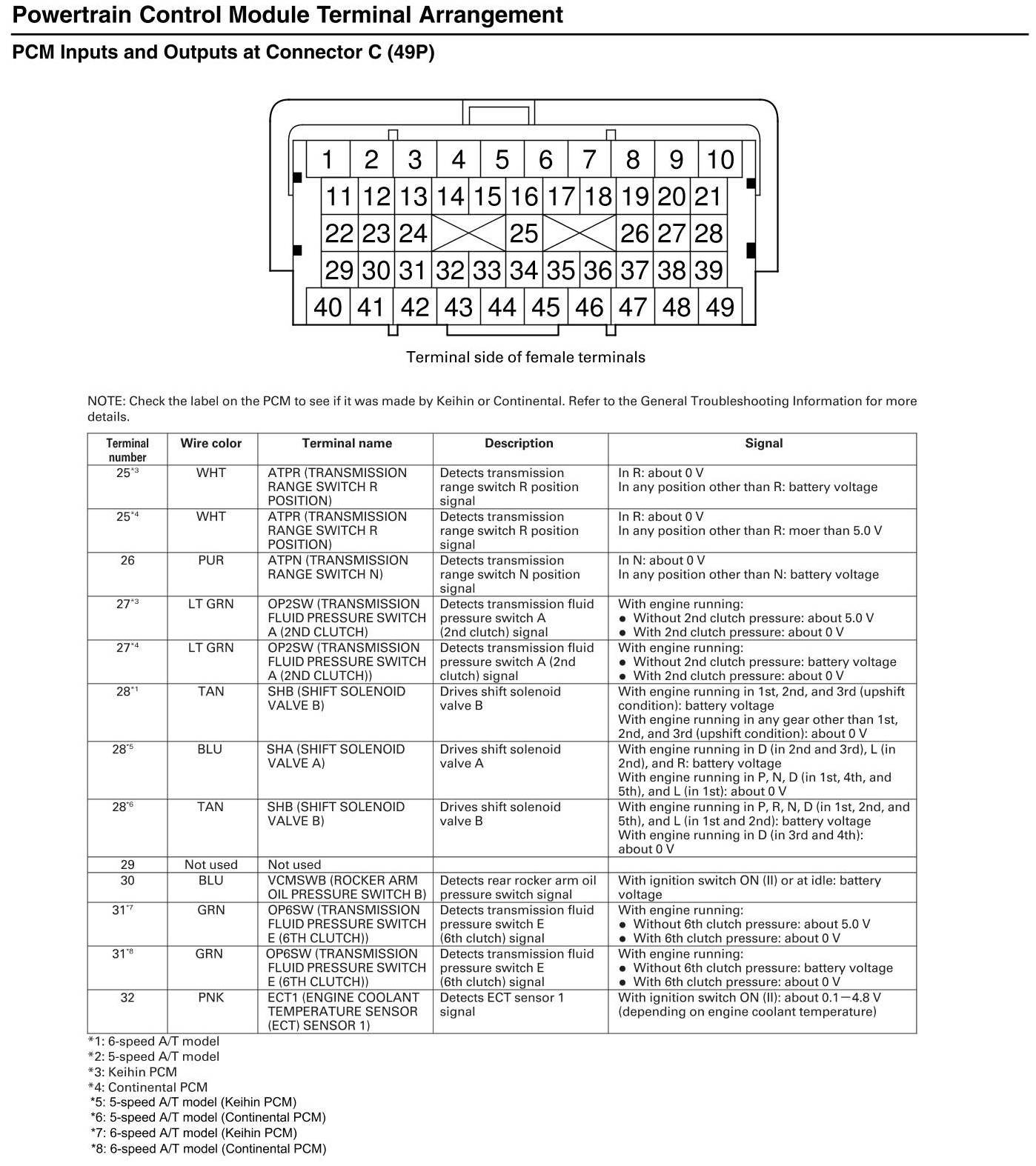 PCM Inputs and Outputs At Connector C