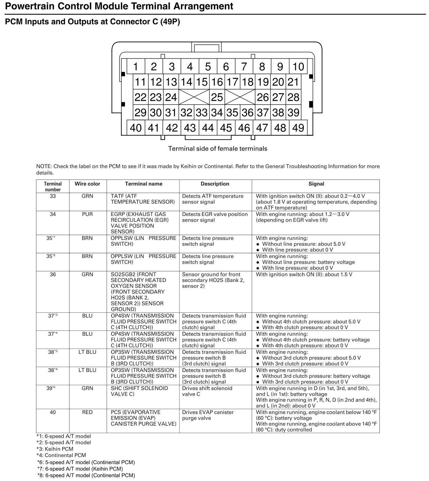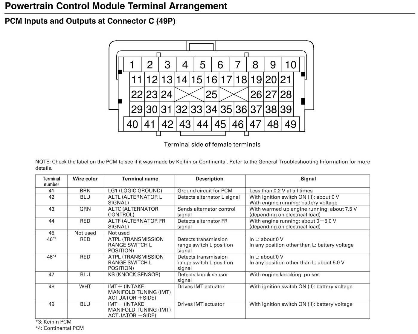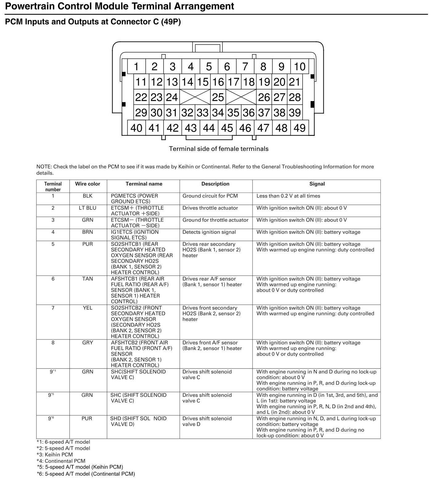 PCM Inputs and Outputs At Connector C