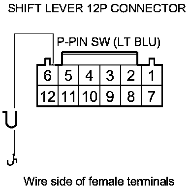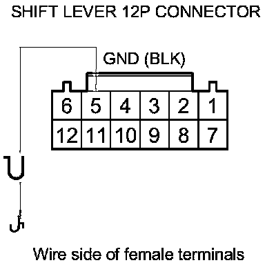 15. Check for continuity between shift lever 12P connector terminal No. 6 and body ground.