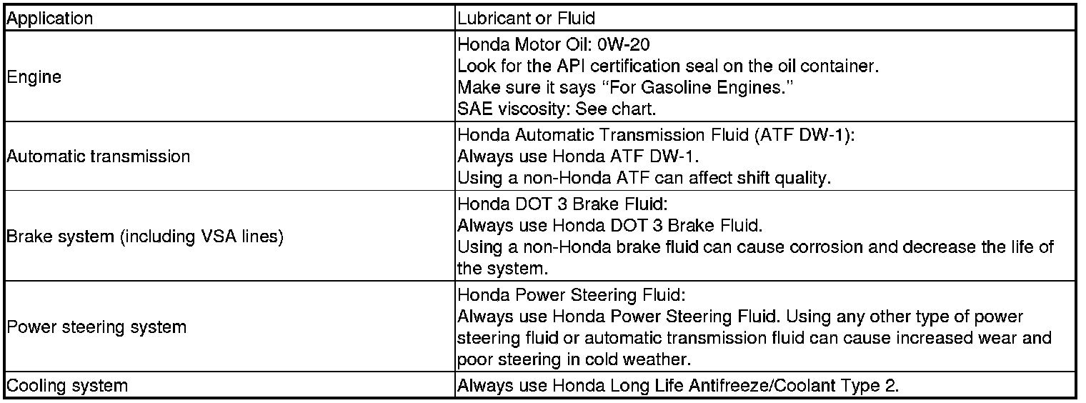 Home >> Honda >> 2012 >> Odyssey V6-3.5L >> Repair and Diagnosis >> Specifications >> Fluid Type Specifications >> Fluids