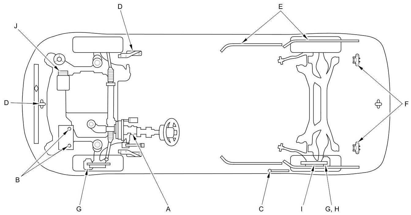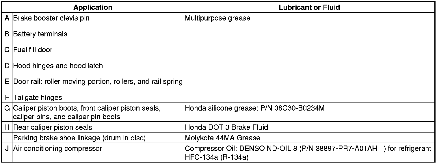 - Lubricate the following areas using the recommended lubricants and fluids.