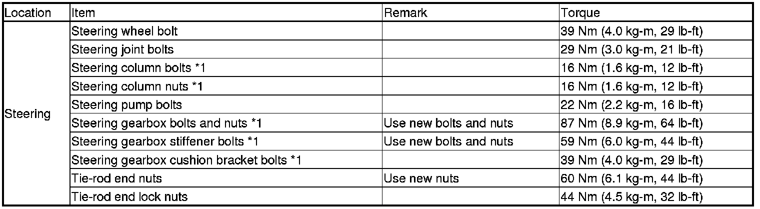 *Refer to the each S/M section for the bolts/nuts not indicated here.