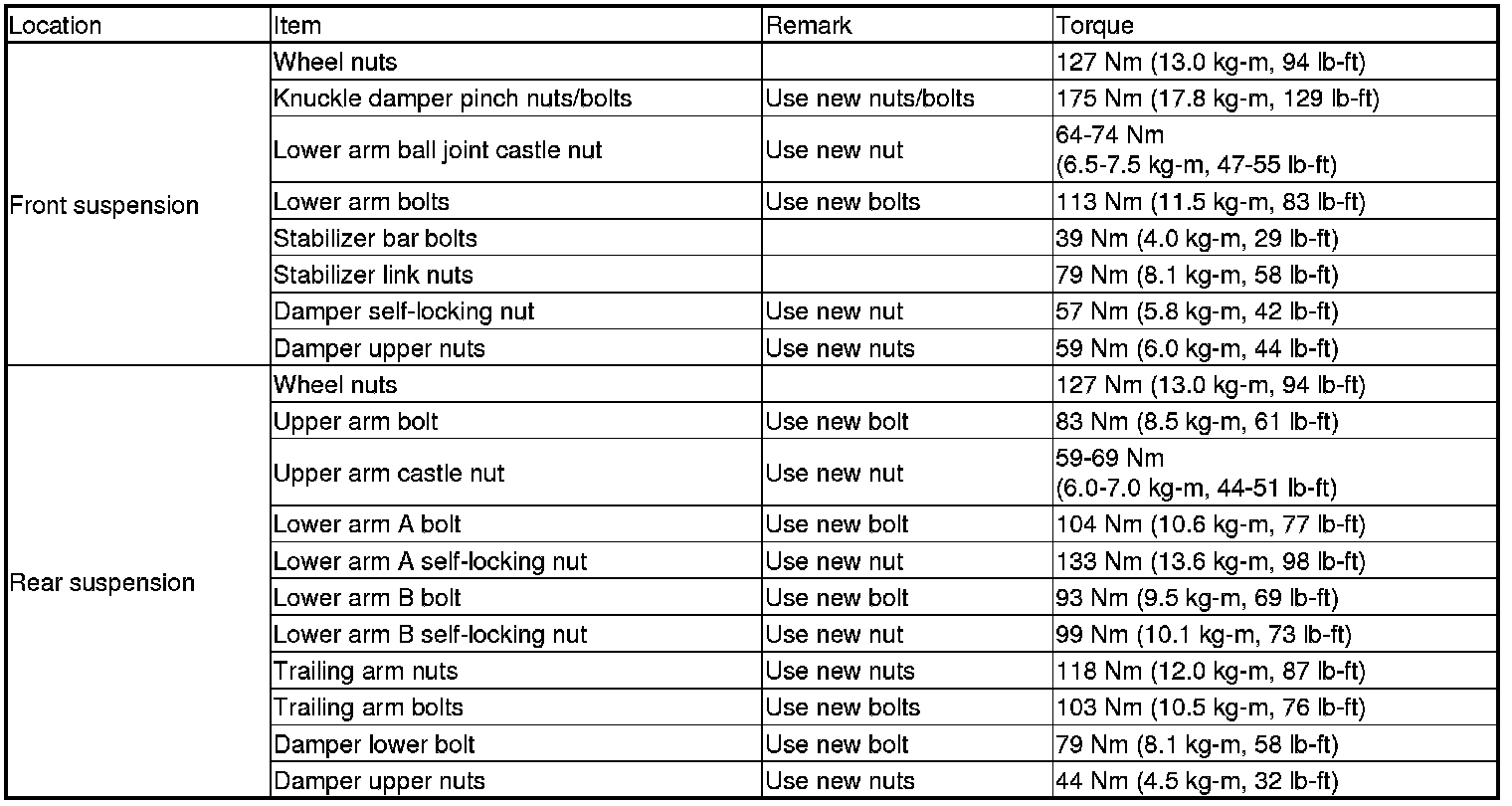 Torque Specifications
