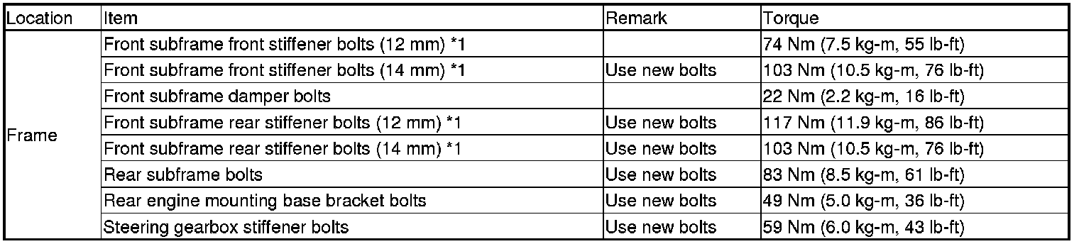 *Refer to the each S/M section for the bolts/nuts not indicated here.