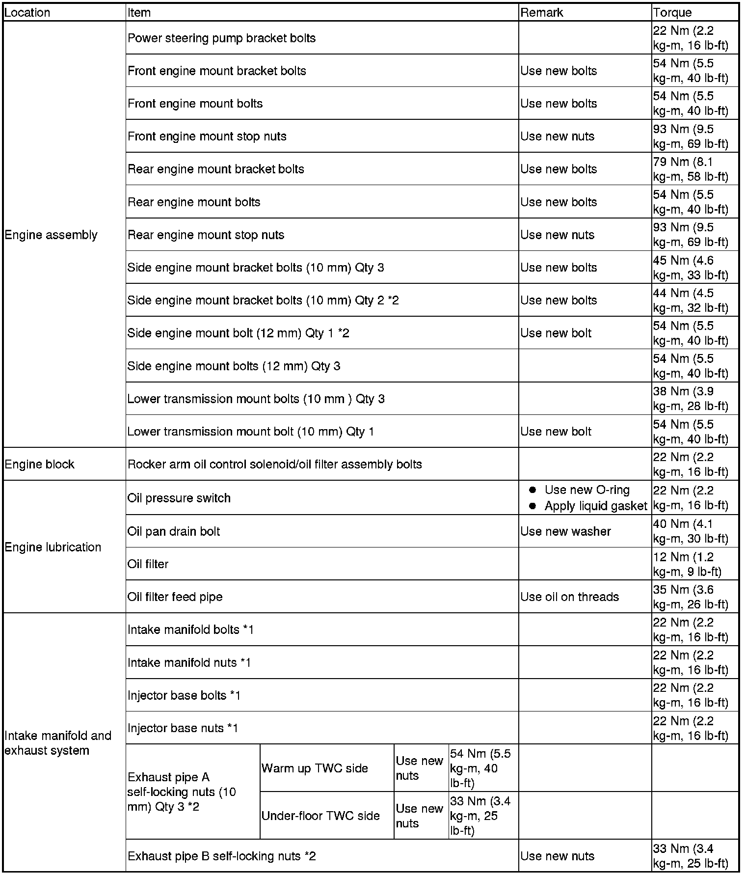 *2: Follow the S/M procedures closely for torque, sequence, and special steps.