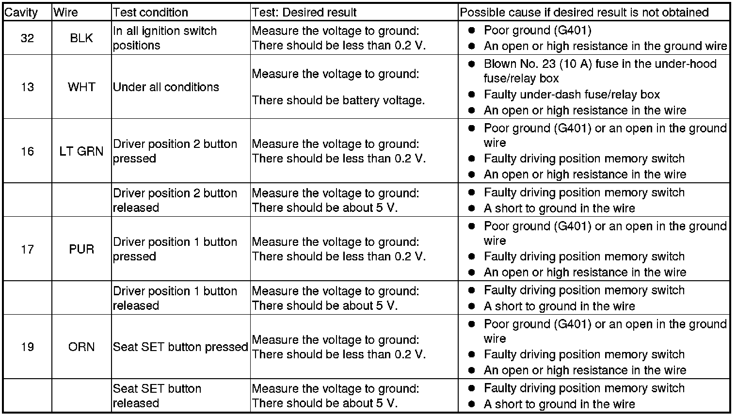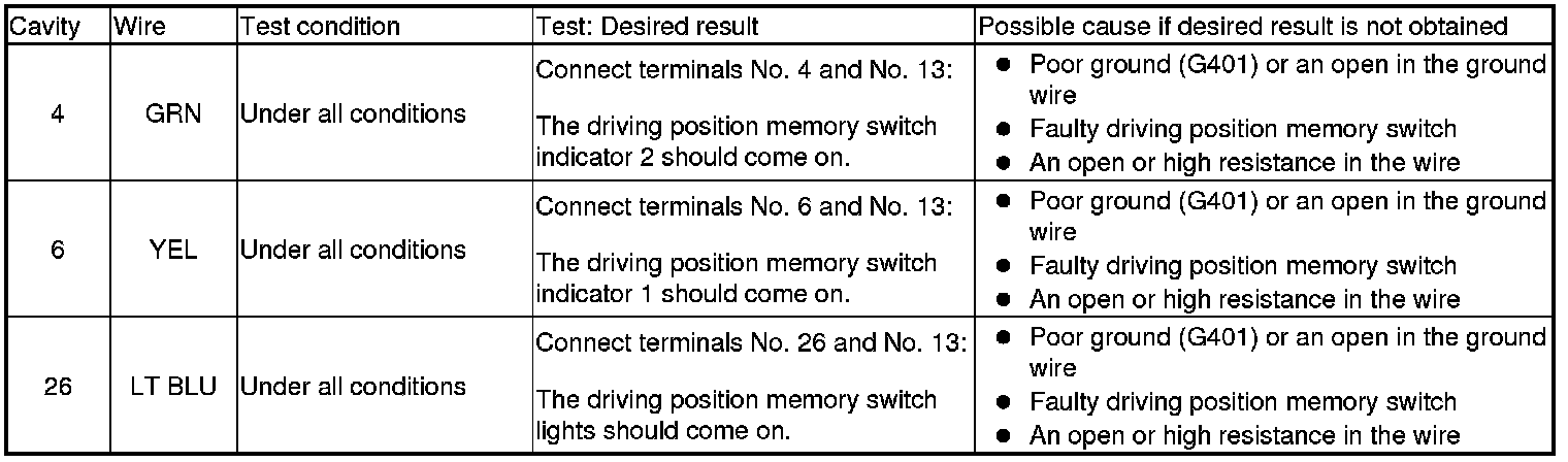 Driving Position Memory System (Power Window Master Switch) Input Test