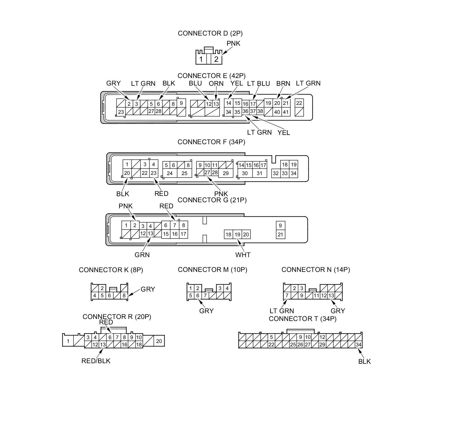 NOTE: All connector views are shown from the wire side of female terminals.