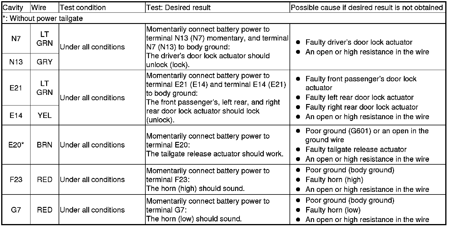 Keyless/Power Door Locks/Security System (MICU And Door Multiplex Control Unit) Input Test
