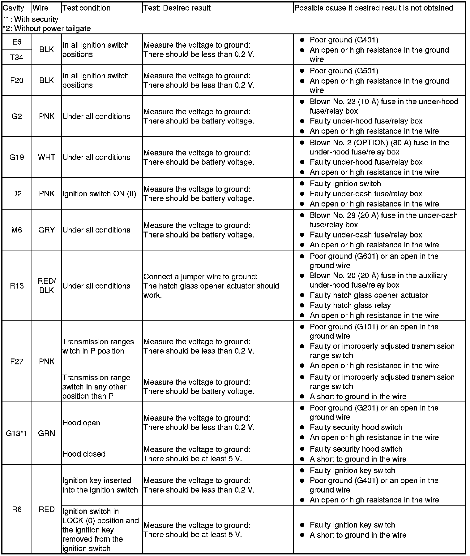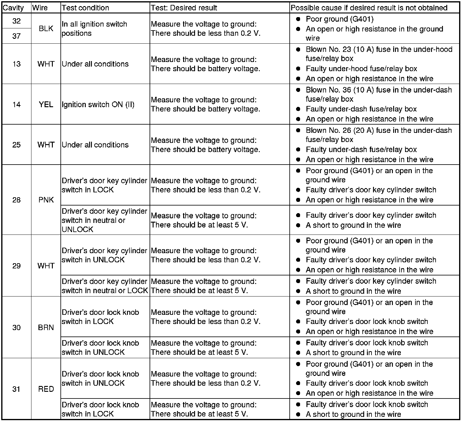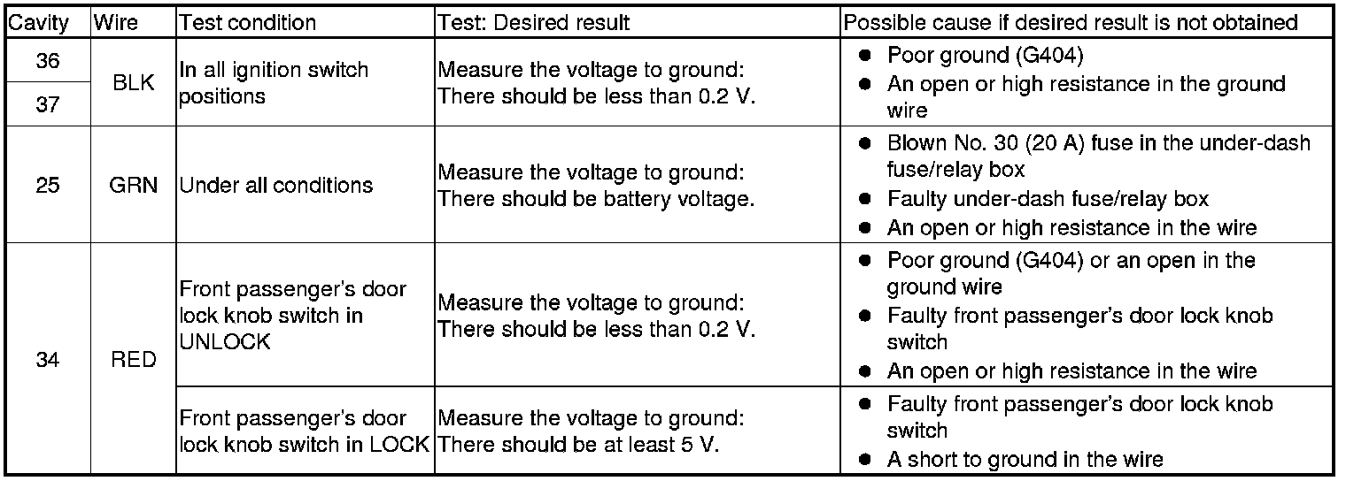 NOTE: Before testing, make sure the No. 29 (20 A) fuse in the under-dash fuse/relay box.