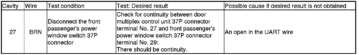 17. Reconnect the 37P connector to the front passenger's power window switch, and do the following input tests.