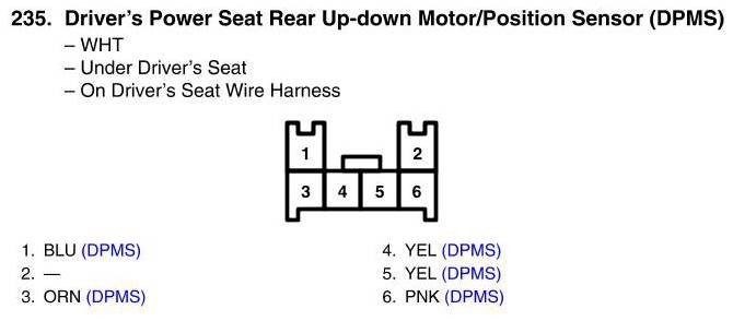 View 235 - Driver's Power Seat Rear Up-Down Motor/Position Sensor Connector View (DPMS)