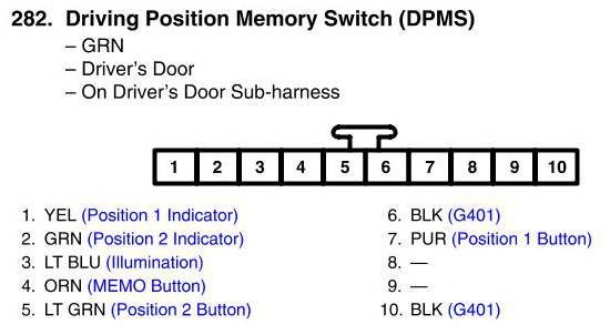 View 282 - Driving Position Memory Switch Connector View (DPMS)