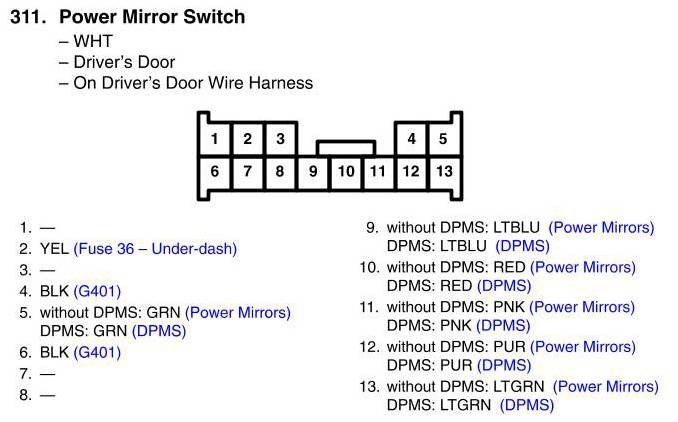 View 311 - Power Mirror Switch Connector View