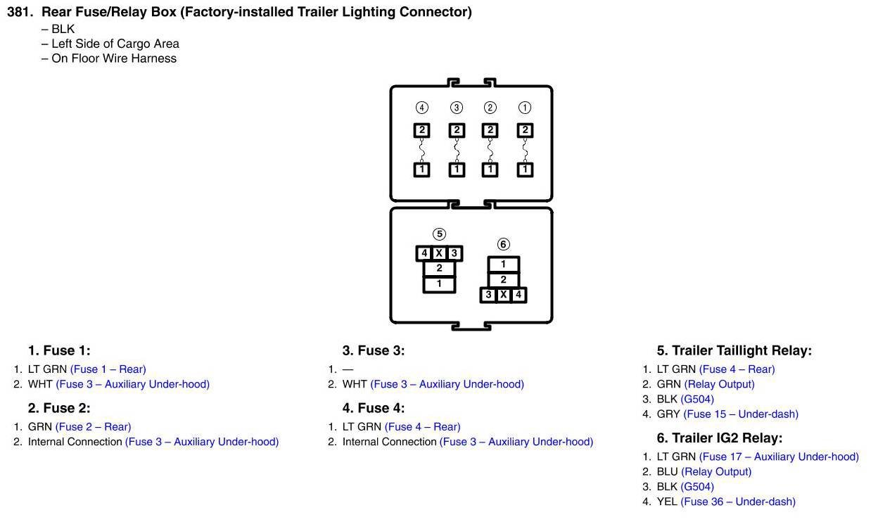 View 381 - Rear Fuse/Relay Box Connector View (Factory-Installed Trailer Lighting Connector)