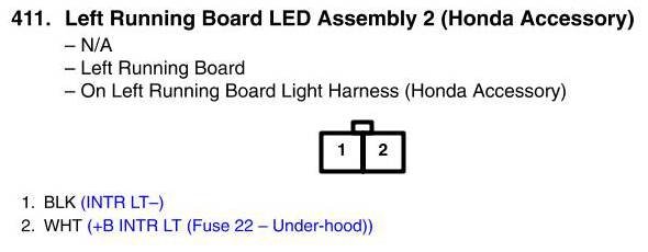 View 411 - Left Running Board LED Assembly 2 Connector View (Honda Accessory)