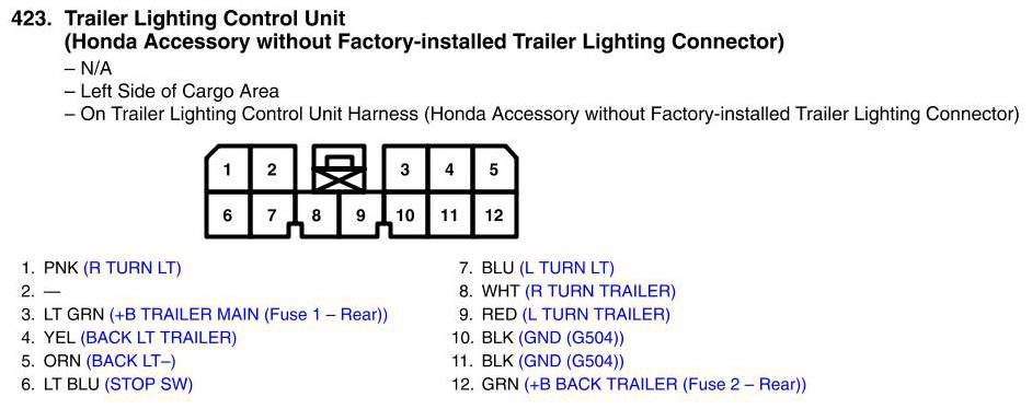 Trailer Lighting Control Unit Connector View (Honda Accessory Without Factory-Installed Trailer Lighting Connector)