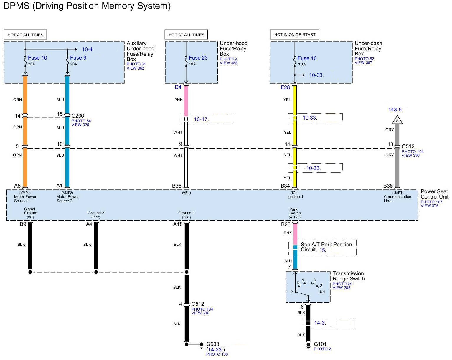 Home >> Honda >> 2012 >> Pilot 2WD V6-3.5L >> Repair and Diagnosis >> Diagrams >> Electrical Diagrams >> Seats >> System Diagram >> Diagram Set 143 (DPMS (Driving Position Memory System))