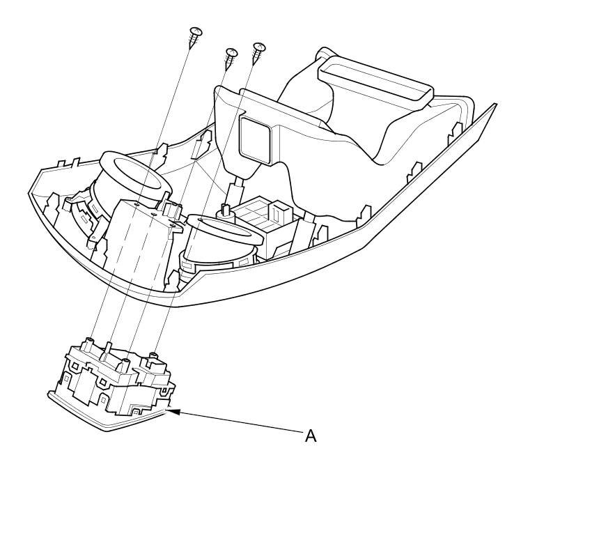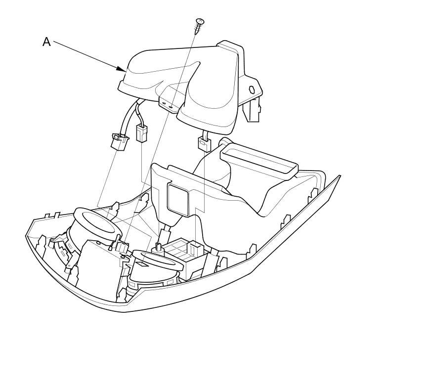 2. Remove the self-tapping screw from the console rear trim, disconnect the connectors and remove the upper duct (A).