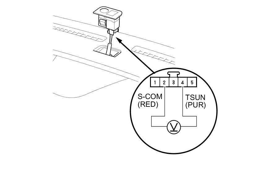 3. Turn the ignition switch to ON (II). Measure the voltage between terminals with the (+) probe on terminal No. 4 and the (-) probe on terminal No. 2 with the connector connected.