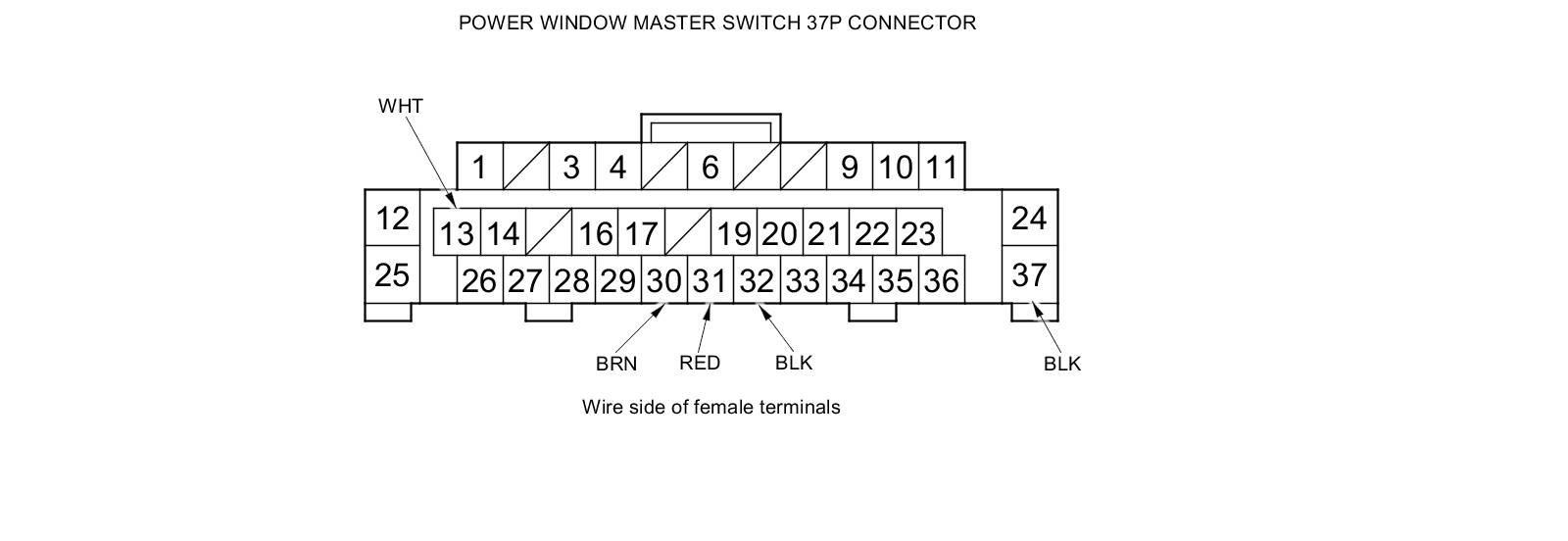 10. Reconnect the 37P connector to the power window master switch, and do the following input tests.