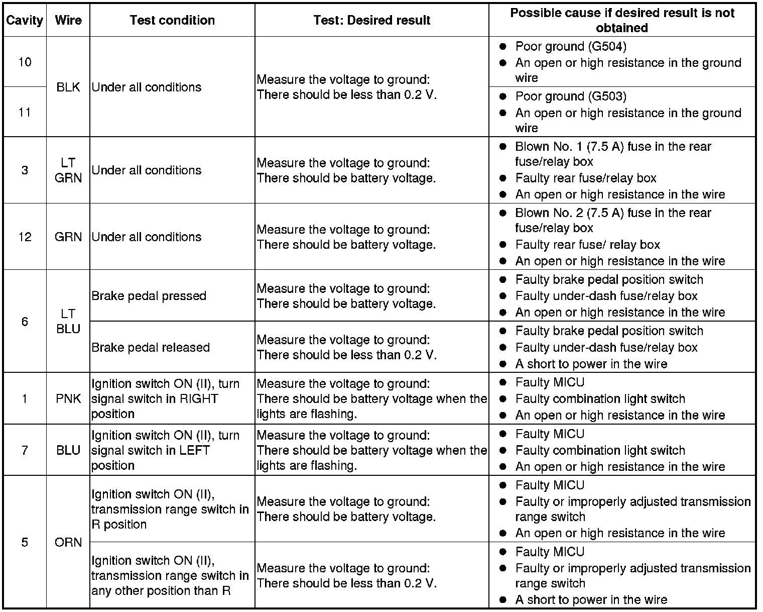 5. With the connectors still disconnected, do the following input tests.
