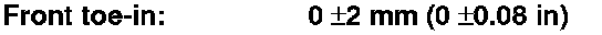The suspension can be adjusted for front camber, front toe, and rear toe. However, each of these adjustments are related to each other. For example, when you adjust camber, the toe will change. Therefore, you must adjust the front wheel alignment whenever you adjust camber or toe.