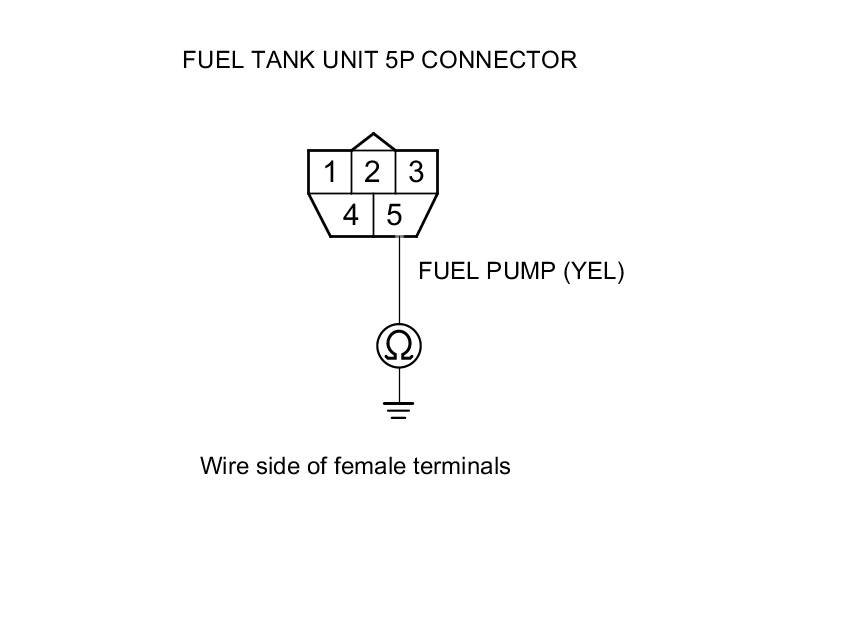 55. Check for continuity between fuel tank unit 5P connector terminal No. 5 and body ground.
