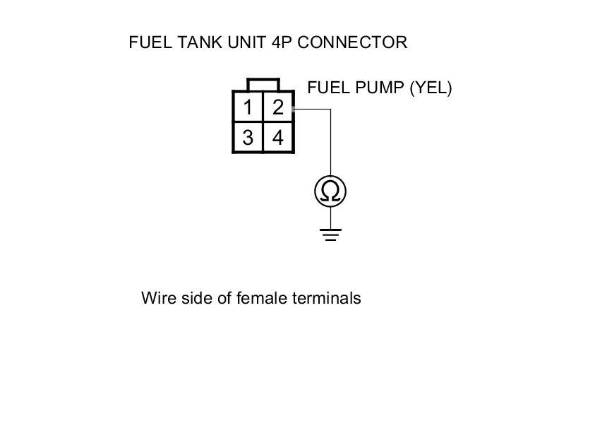 59. Check for continuity between fuel tank unit 4P connector terminal No. 2 and body ground.