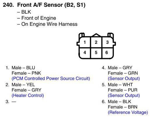 Front A/F Sensor (B2, S1) Connector View