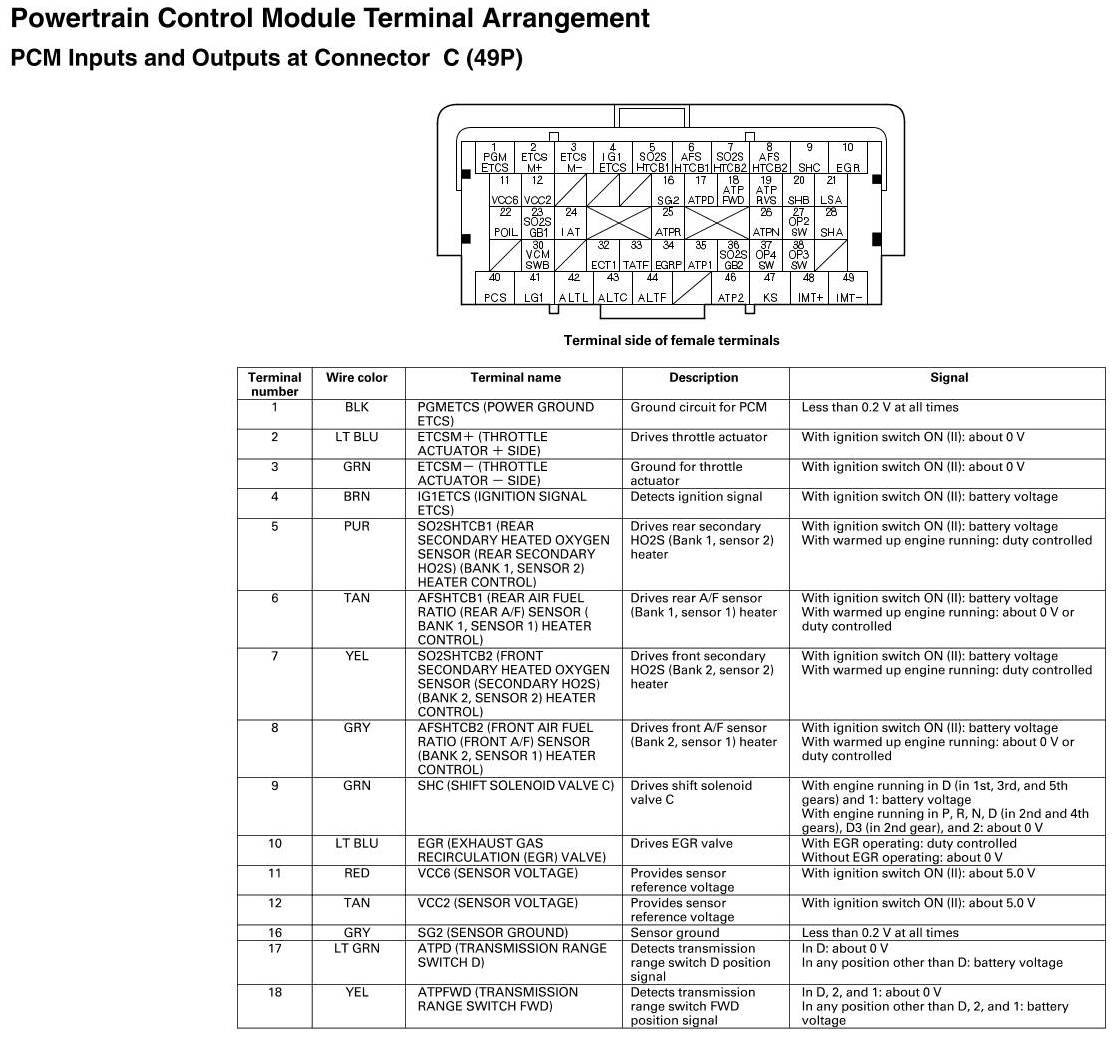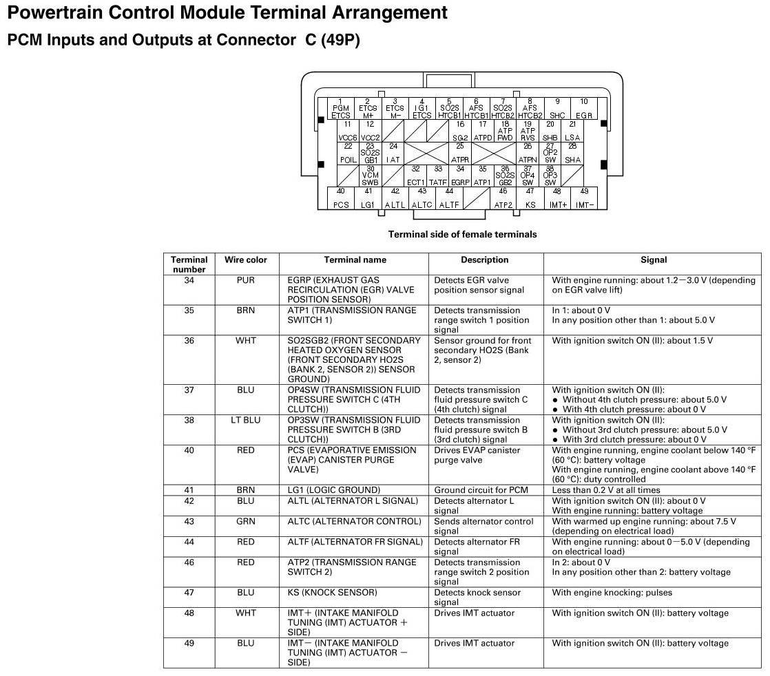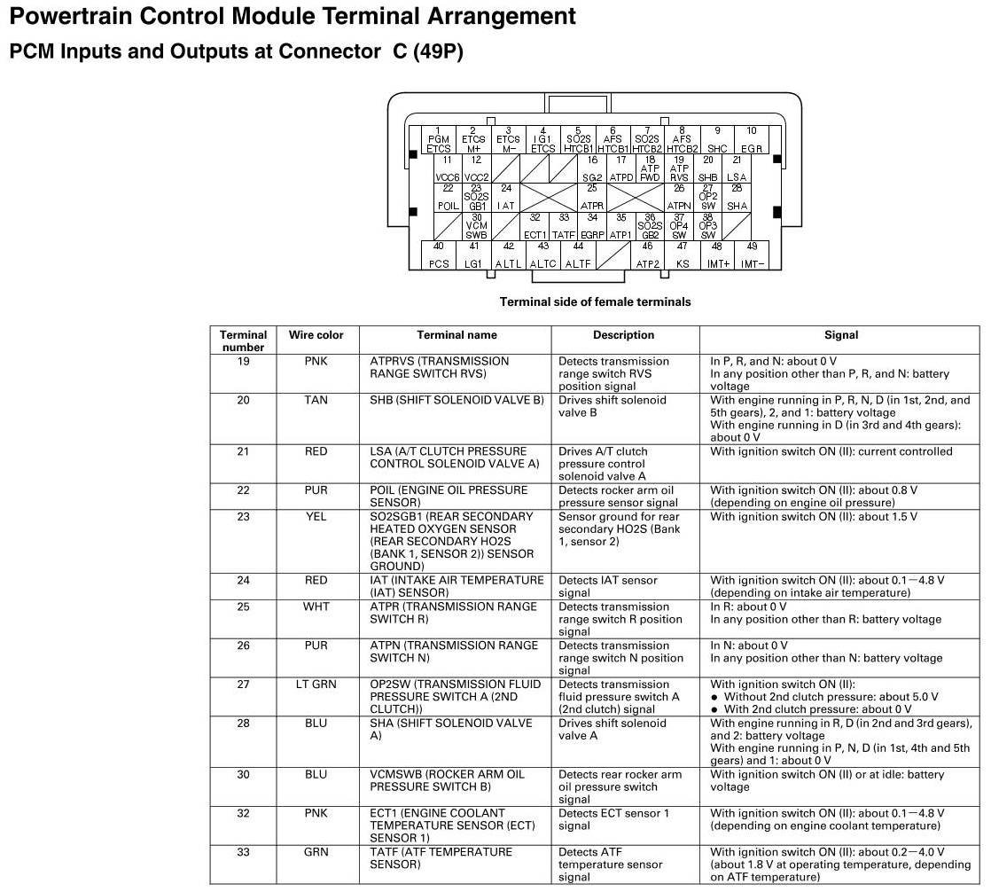 PCM Inputs And Outputs at Connector C