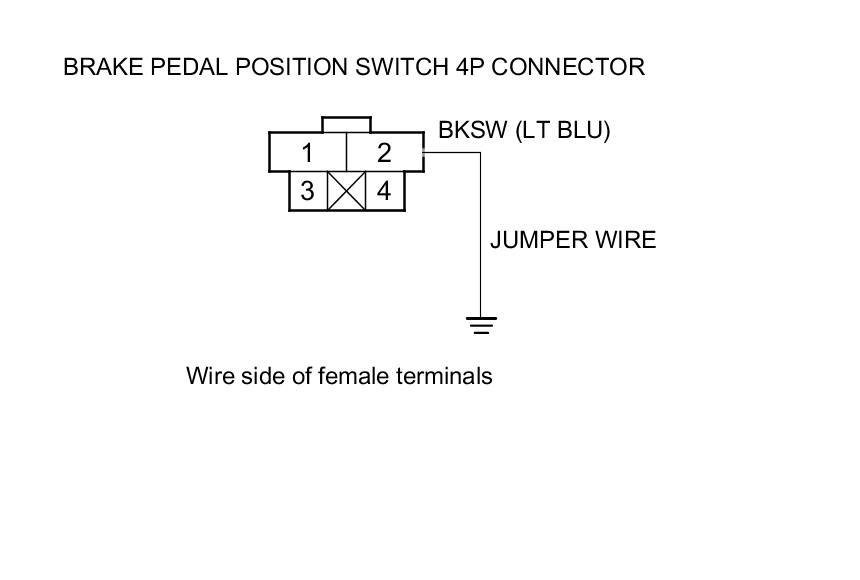 9. Connect brake pedal position switch 4P connector terminal No. 2 to body ground with a jumper wire.