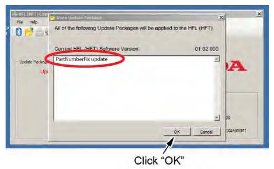 1. In the HFL update tool, highlight "PartNumberFix.update" and then click OK.