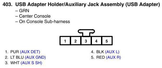 USB Adapter Holder/Auxiliary Jack Assembly Connector View (USB Adapter)