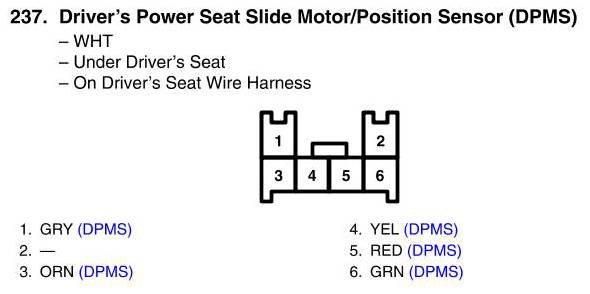 View 237 - Driver's Power Seat Slide Motor/Position Sensor Connector View (DPMS)