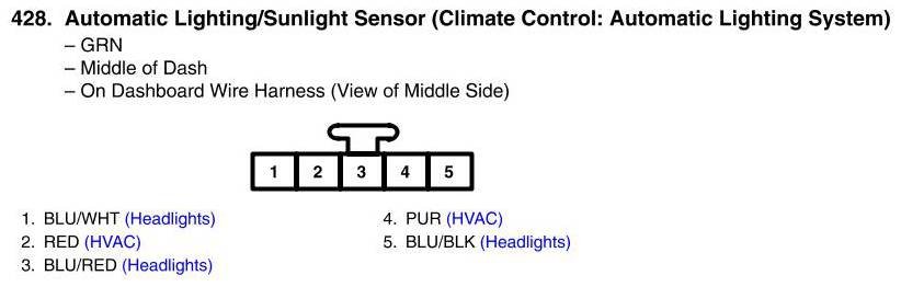 View 428 - Automatic Lighting/Sunlight Sensor Connector View (Climate Control: Automatic Lighting System)