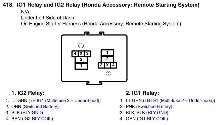IG1 Relay And IG2 Relay Connector View (Honda Accessory: Remote Starting System)