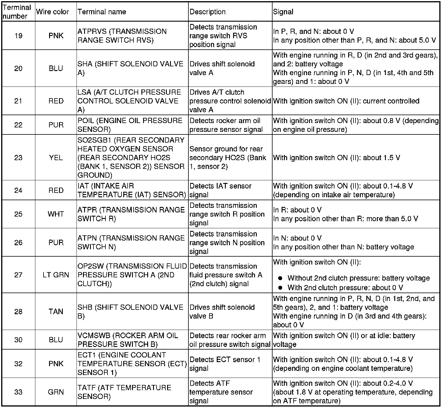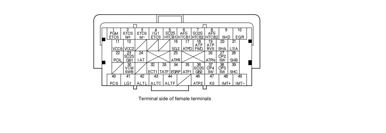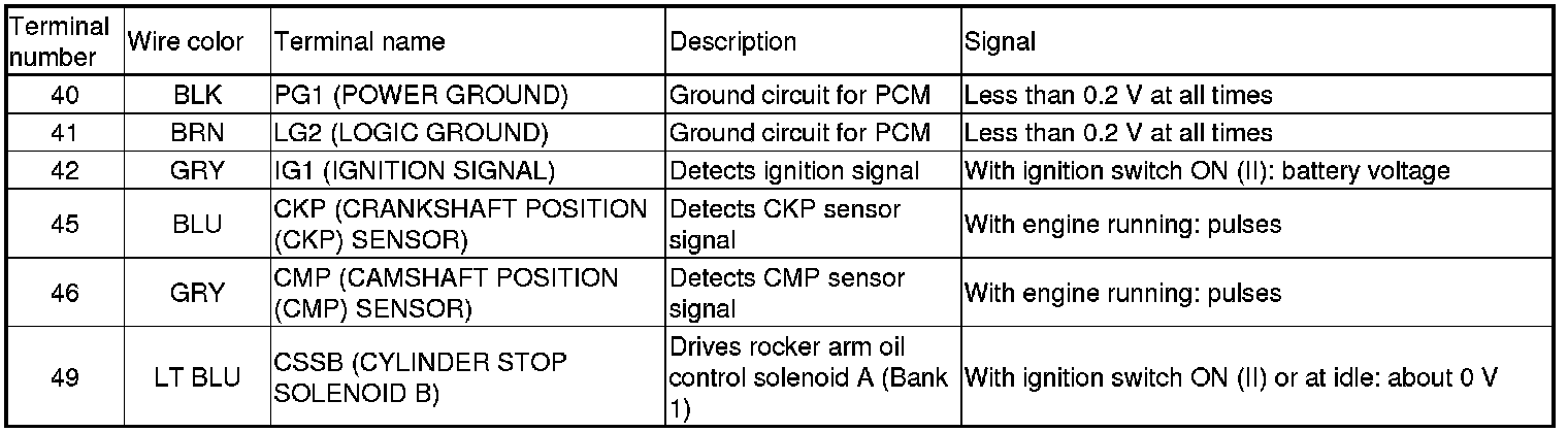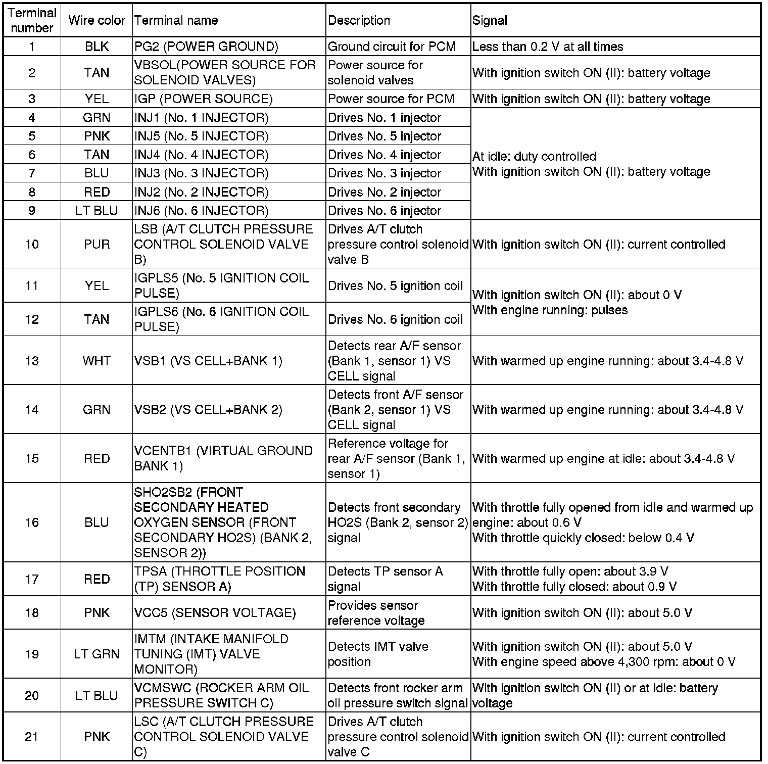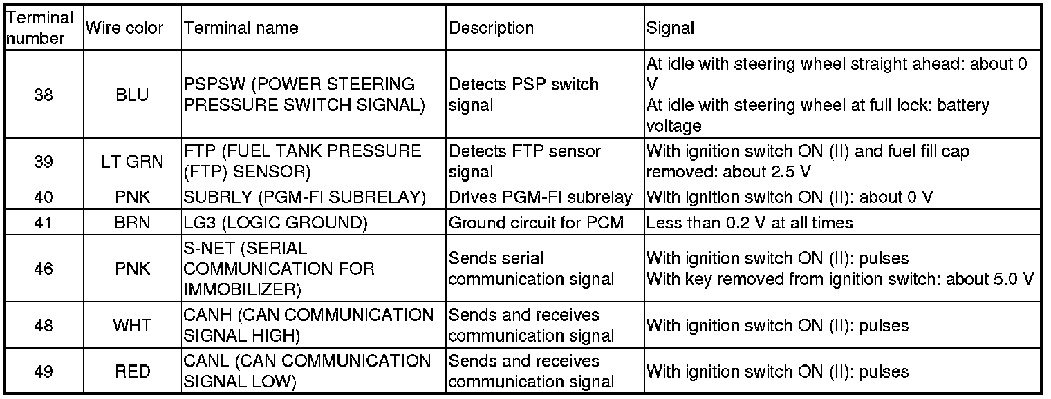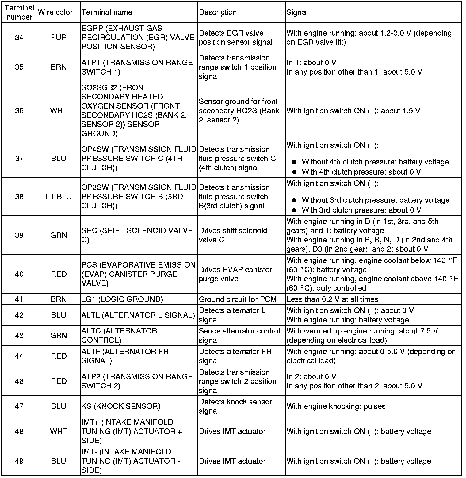 PCM Inputs and Outputs at PCM Connector A (square) (49P)