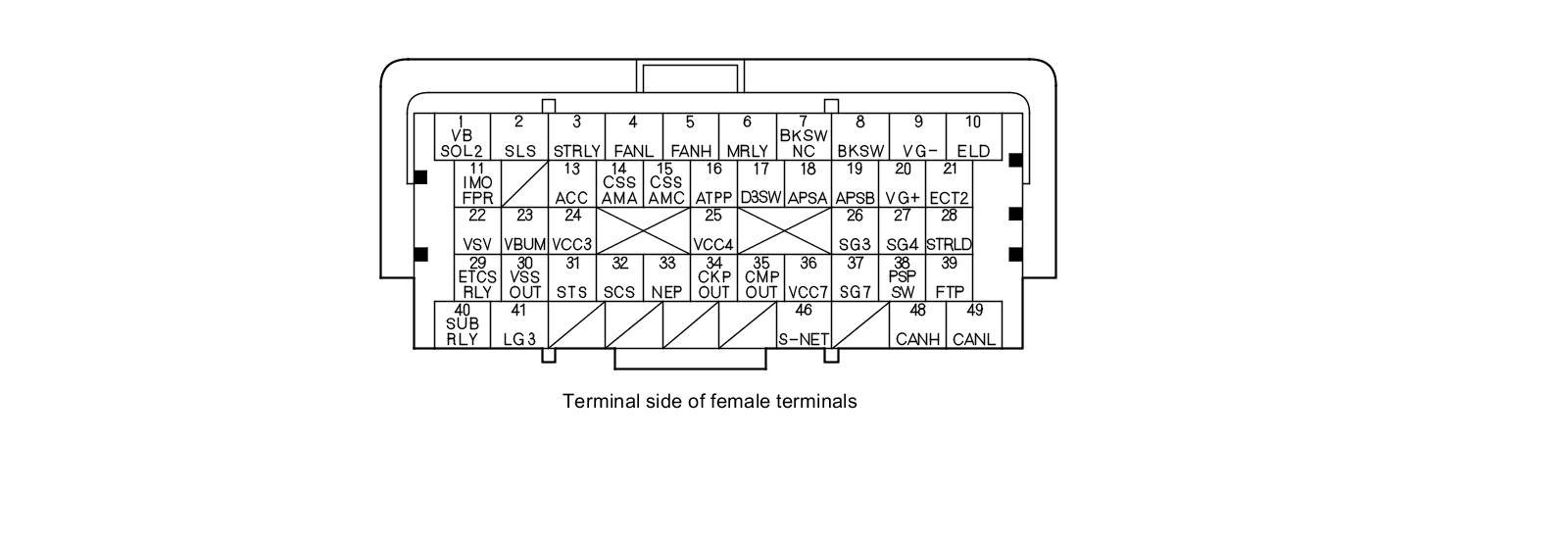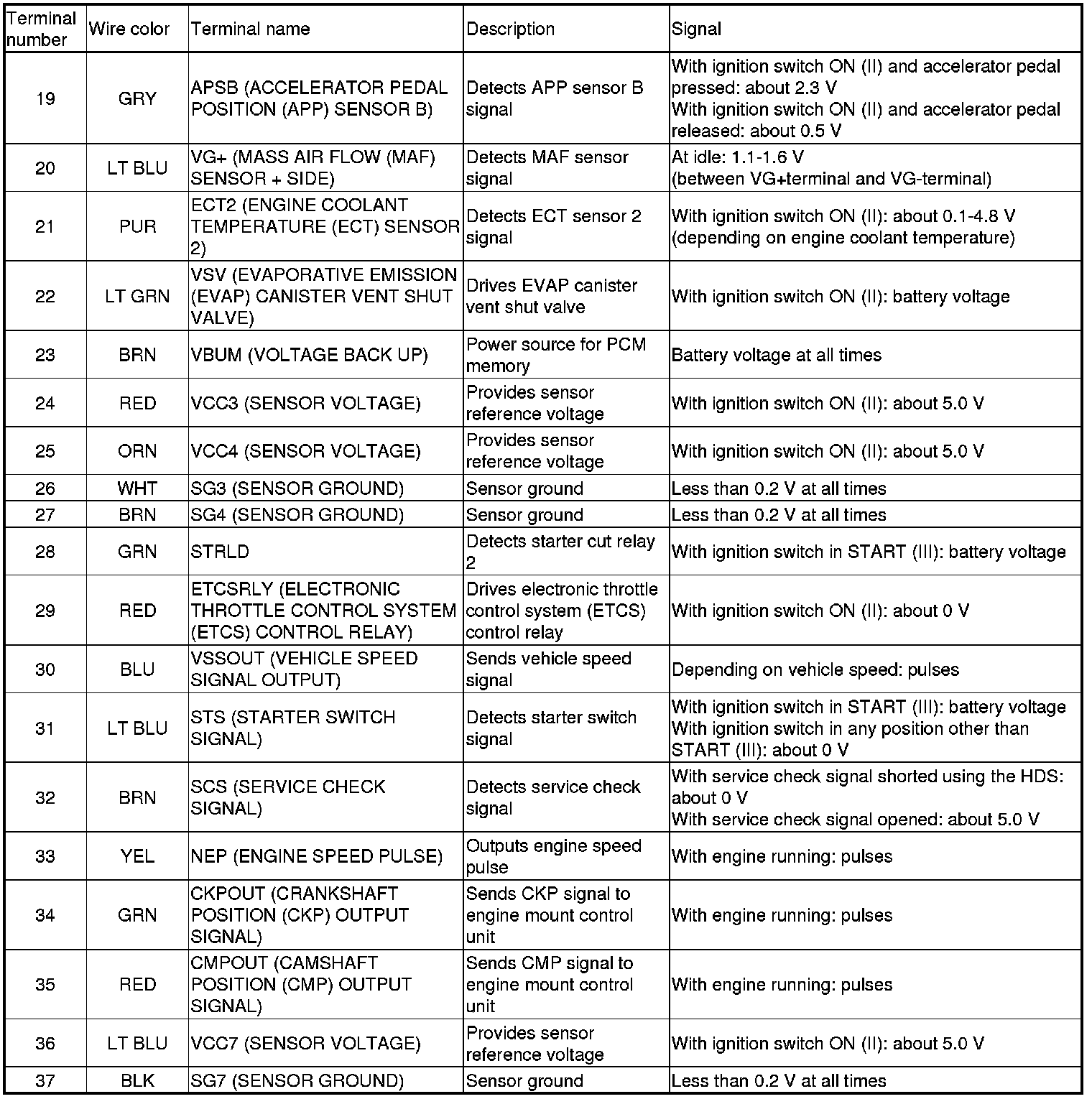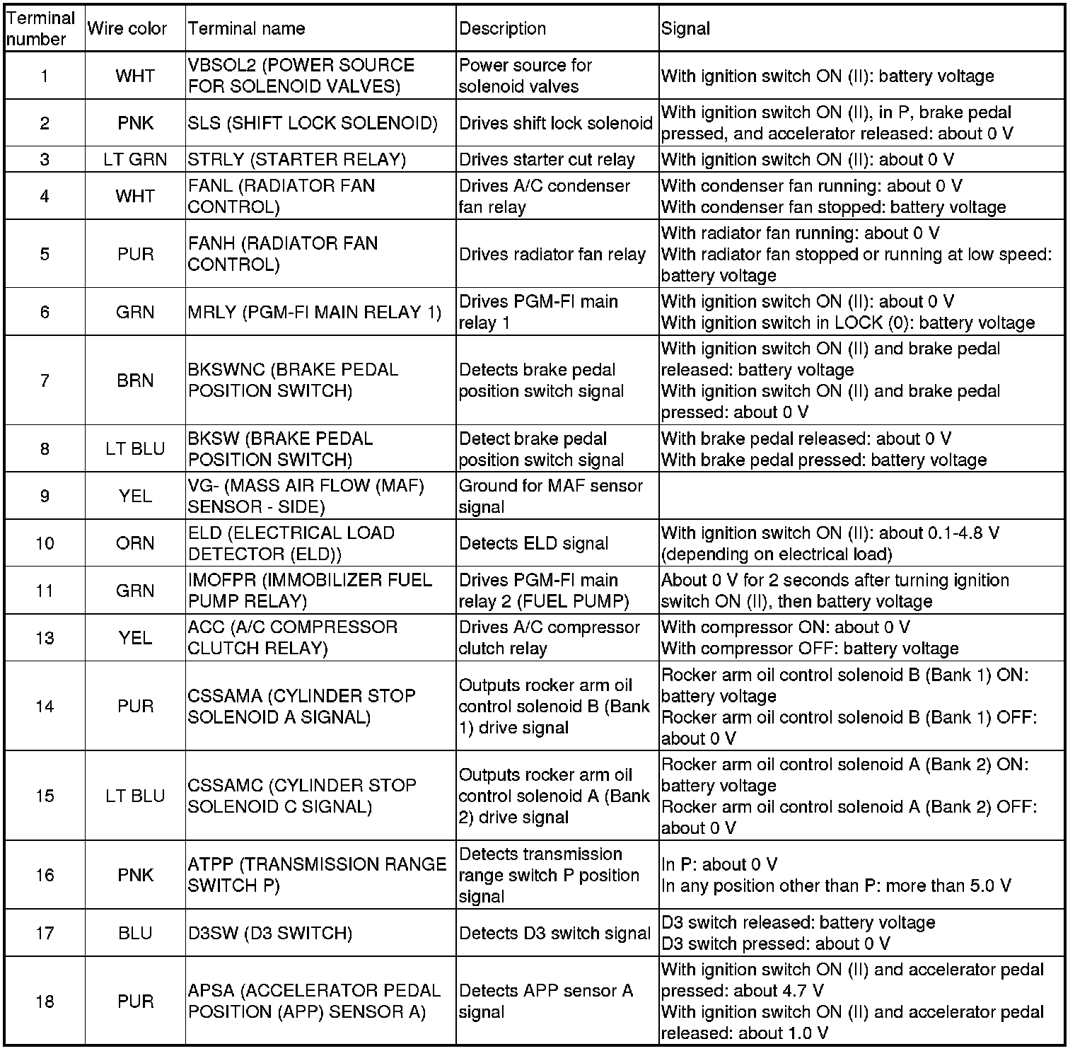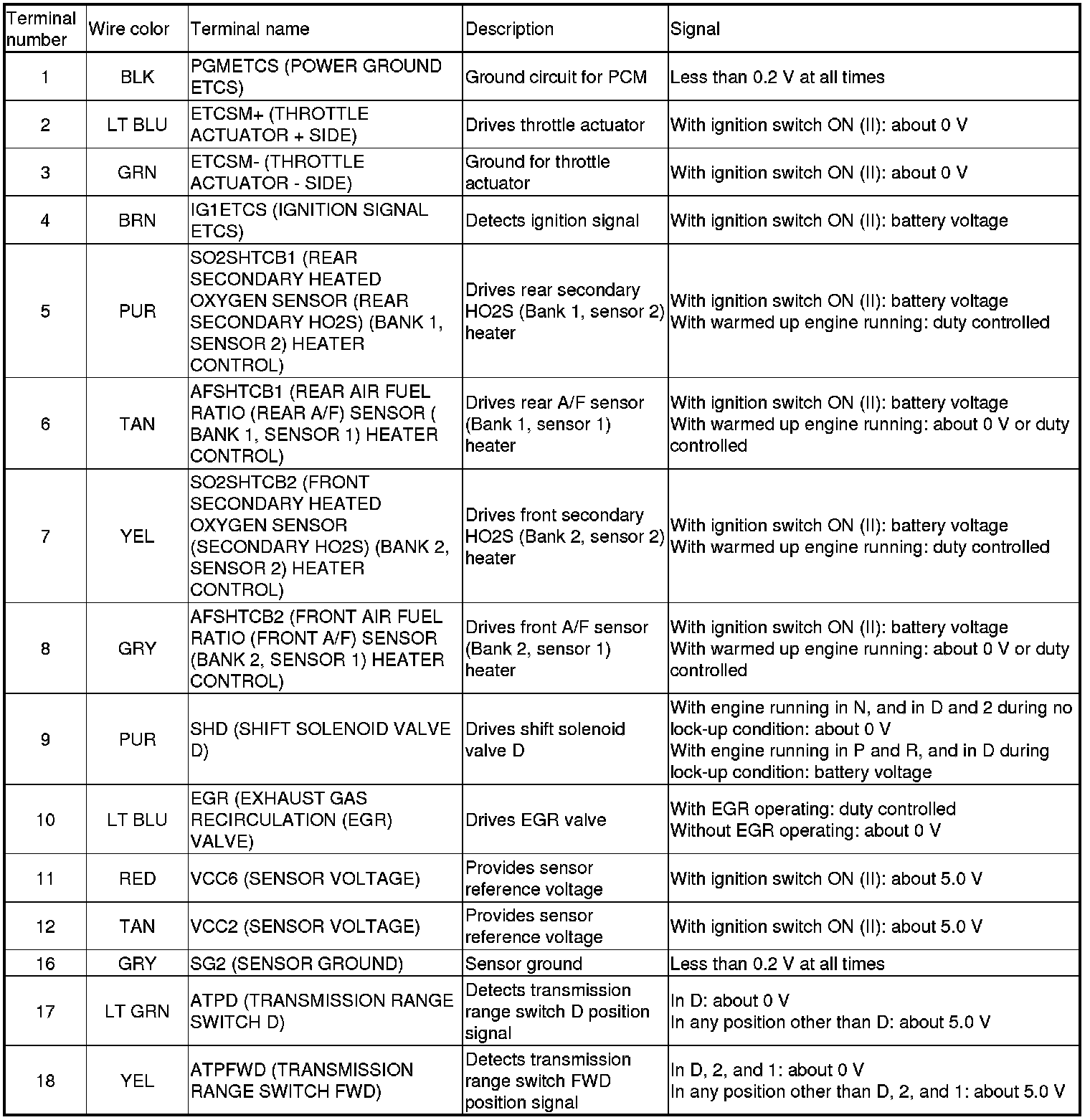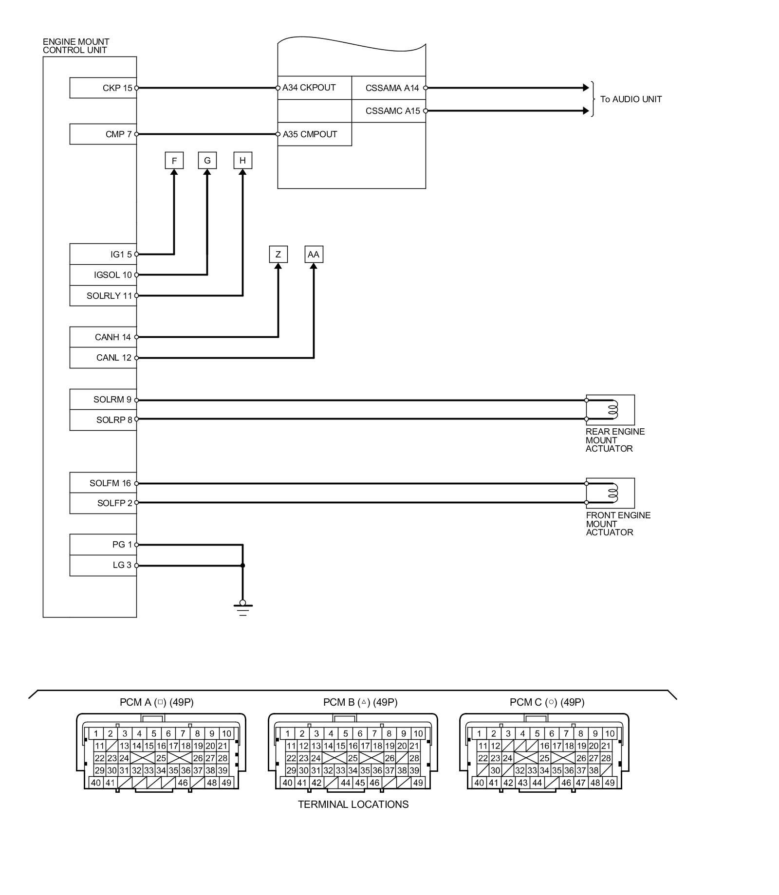 PCM Inputs and Outputs at PCM Connector A (square) (49P)