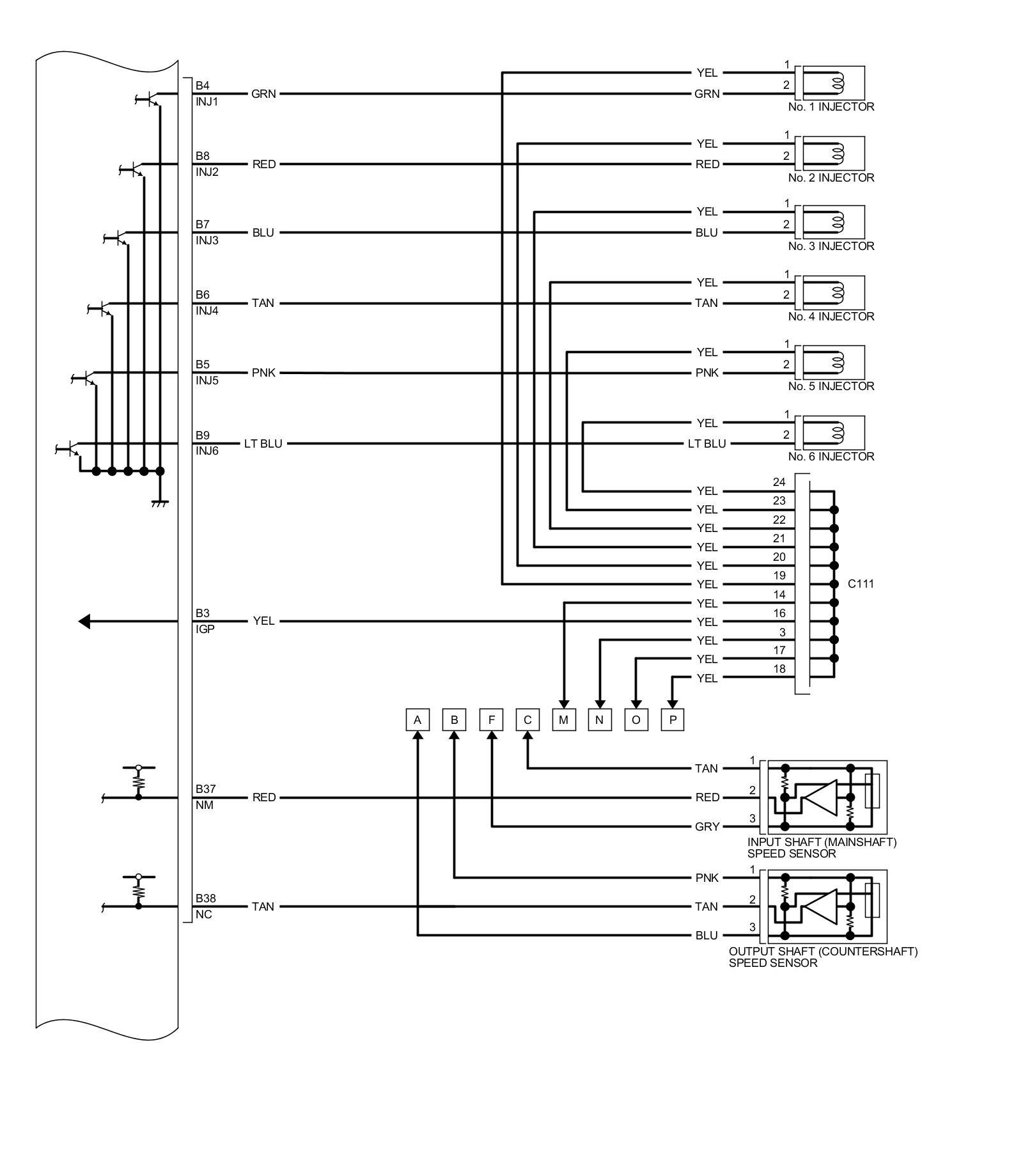 PCM Inputs and Outputs at PCM Connector C (circle) (49P)