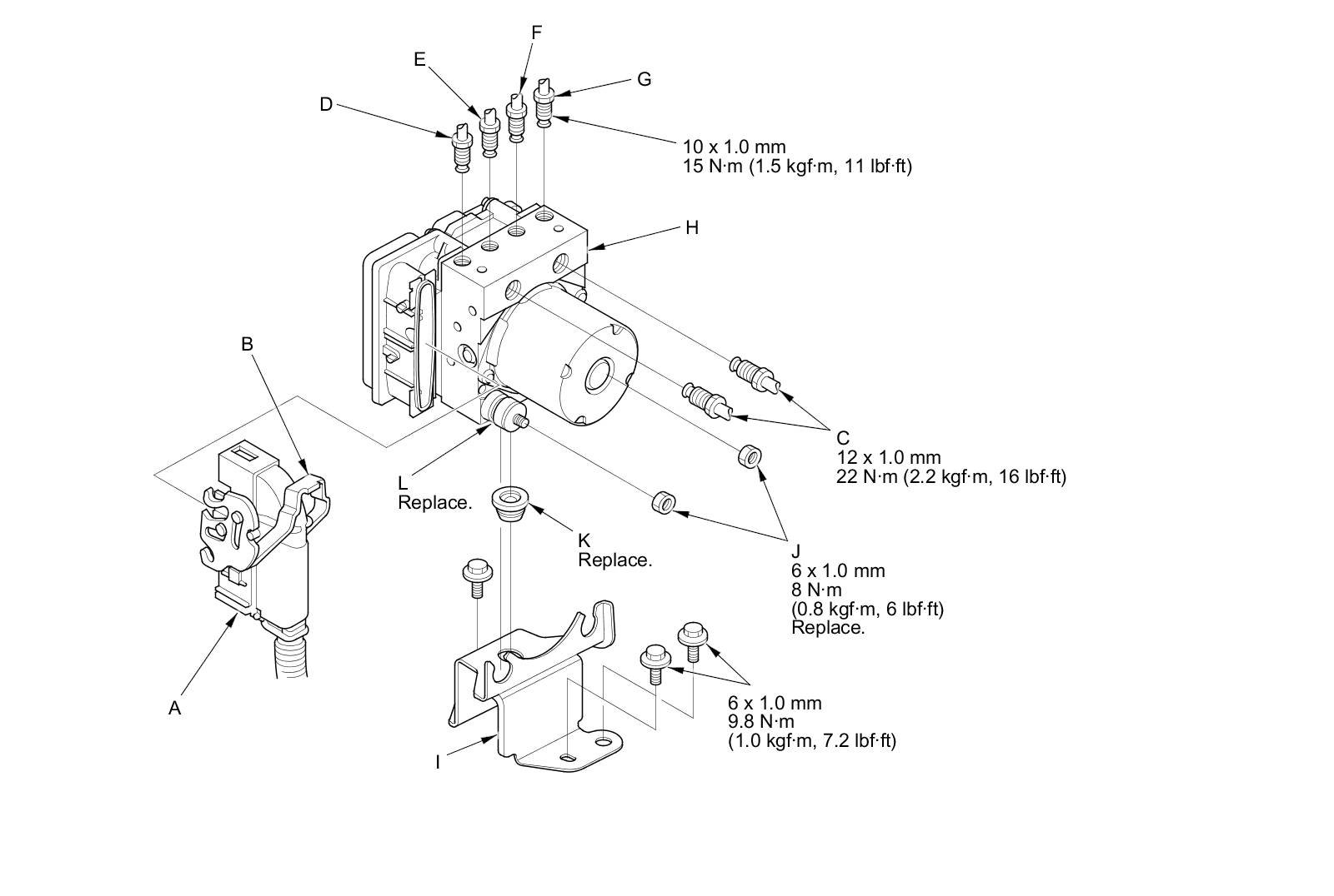 6. Remove the locknuts (J), then remove the VSA modulator-control unit from the bracket.