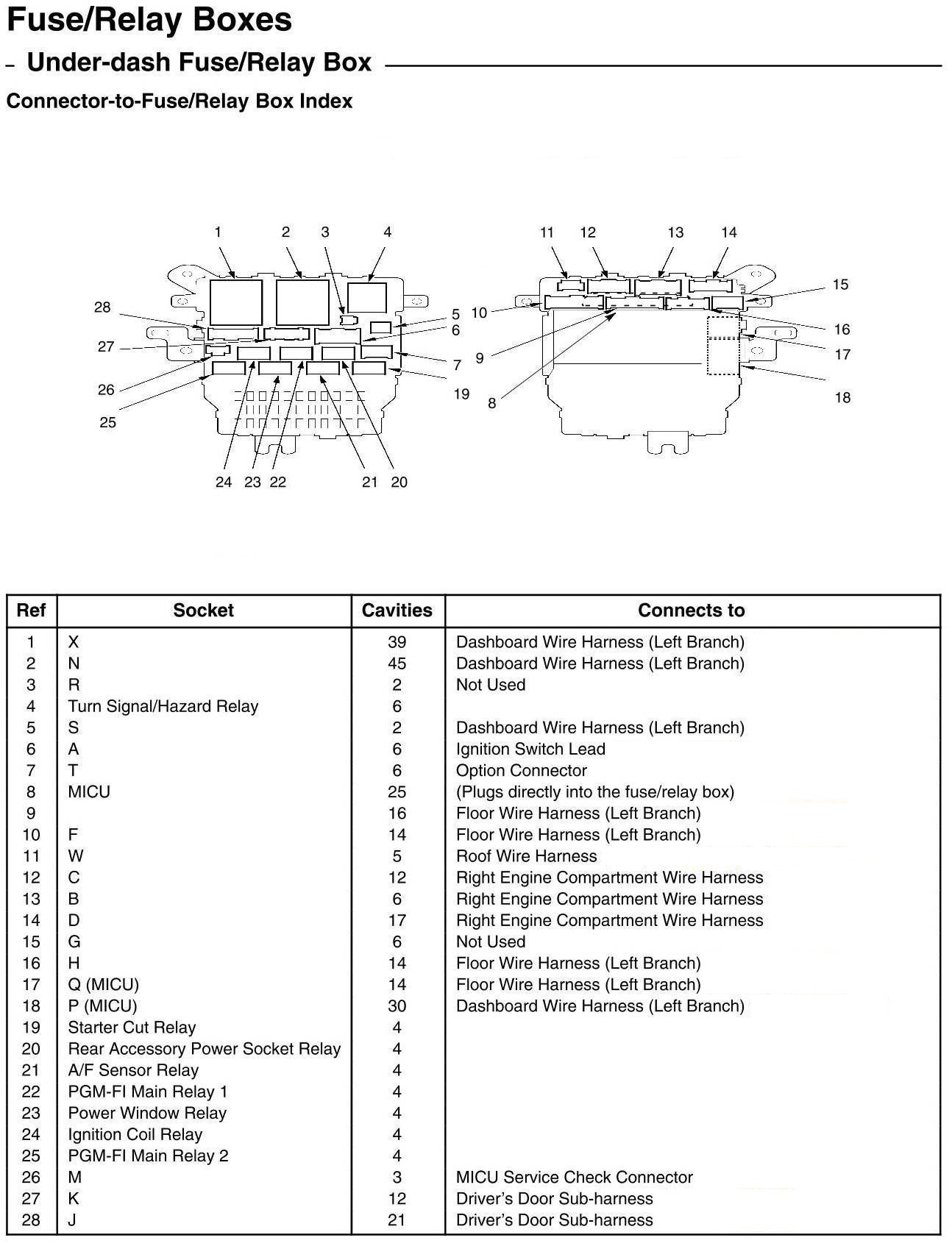 Under-dash Fuse/Relay Box - Connector-to-Fuse/Relay Box Index