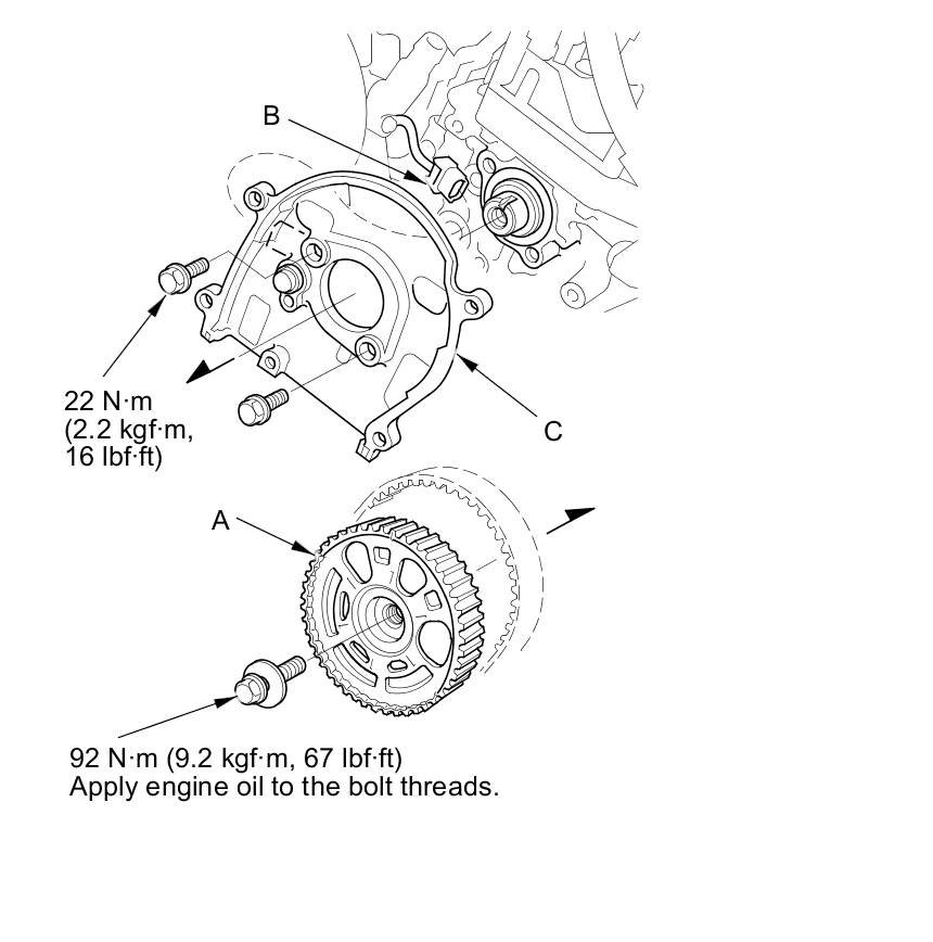 3. Disconnect the CMP sensor connector (B), then remove the back cover (C).