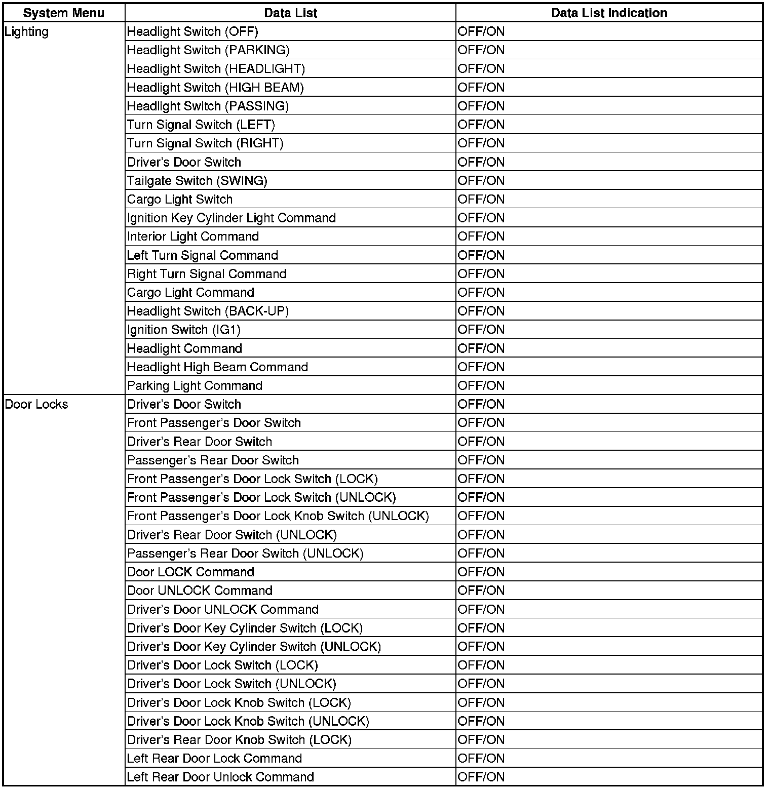 - The multiplex integrated control unit (MICU), relay control module, and gauge control module receive the door lock switch message.