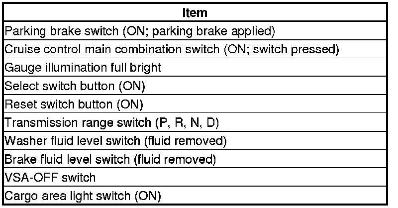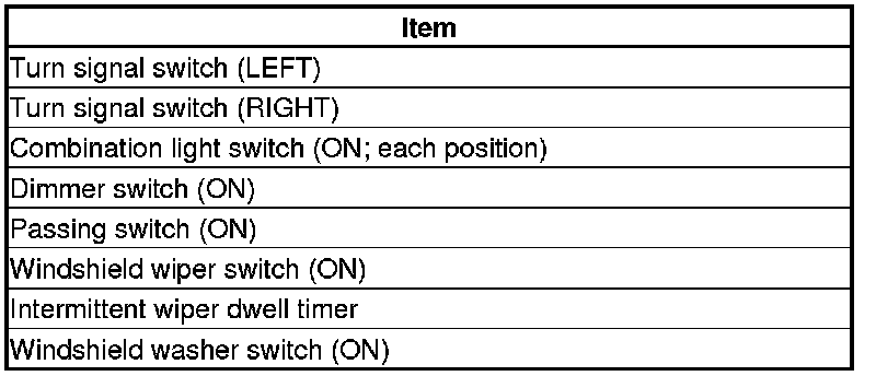 11. The following tables list the circuits that can be checked in Test Mode 2. Operate the switch that is most closely related to the problem. If the circuit is OK, the map lights blink once. If the circuit is faulty, there is no indication.