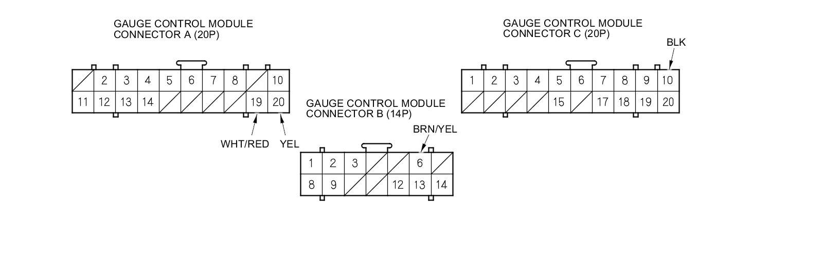 6. Reconnect connectors A and C to the gauge control module, and do the following input tests: