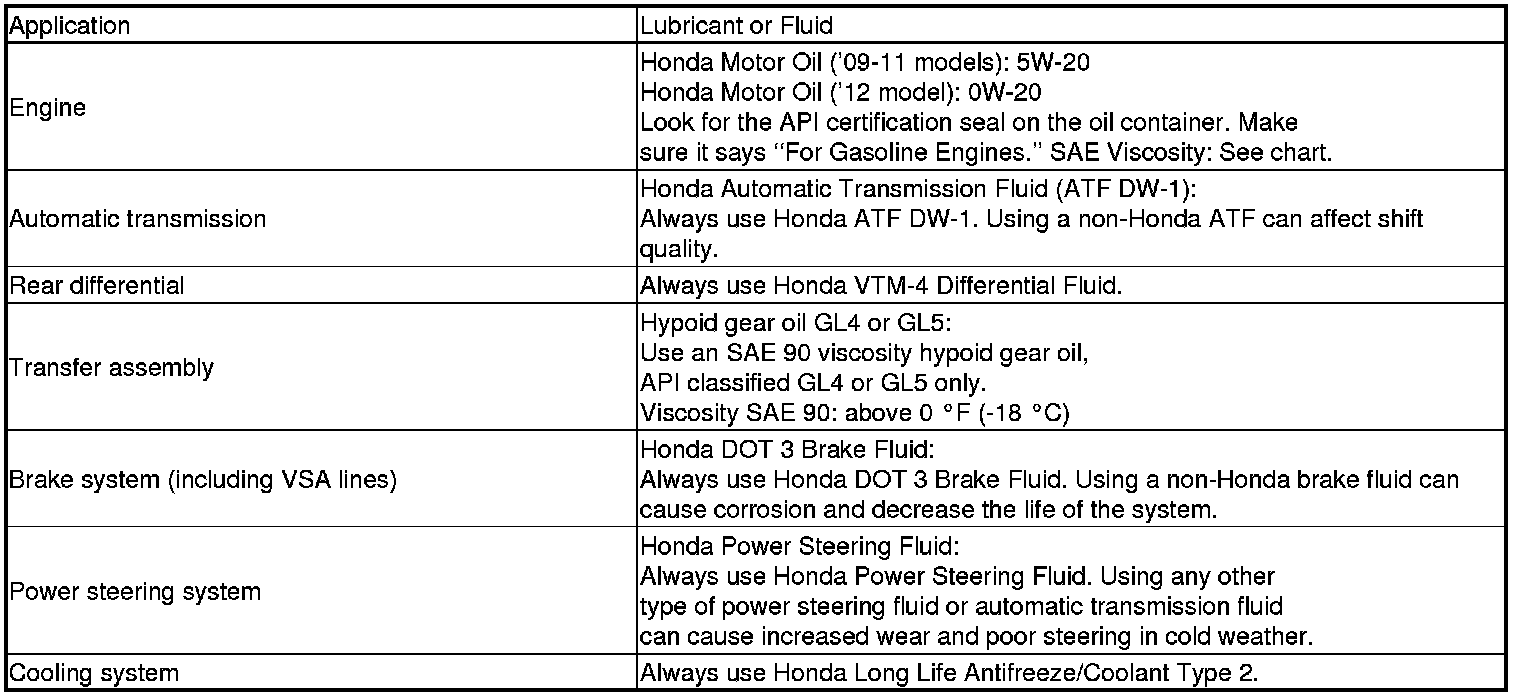 Home >> Honda >> 2012 >> Ridgeline V6-3.5L >> Repair and Diagnosis >> Specifications >> Fluid Type Specifications >> Fluids