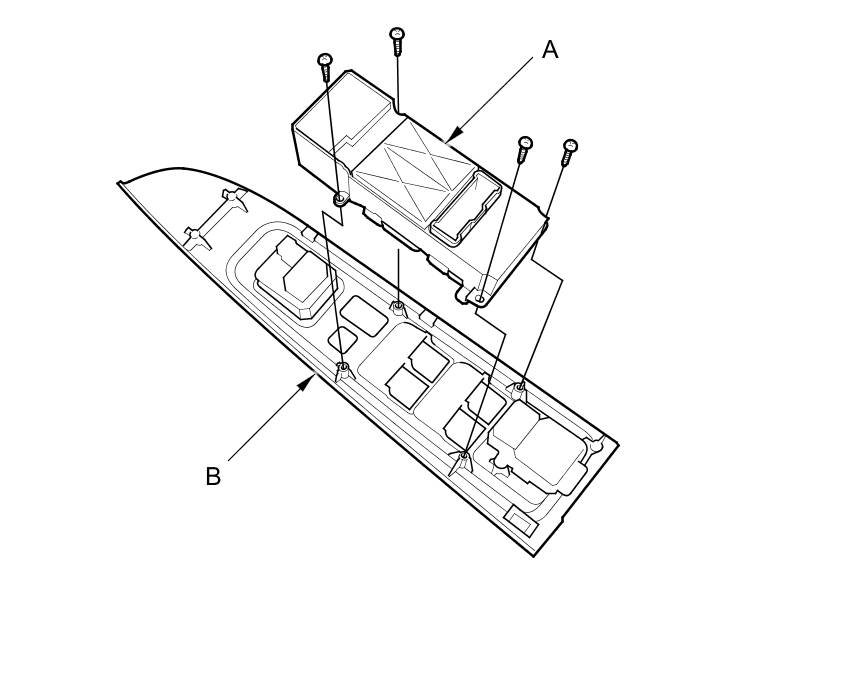 2. Remove the four mounting screws, then remove the master switch (A) from the switch panel (B).