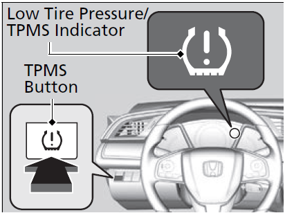 2. If the low tire pressure/TPMS indicator does not blink, confirm the above conditions then press and hold the TPMS button again.