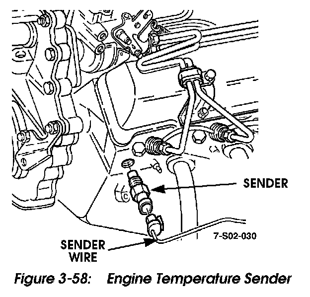 1. Remove nut, lockwasher, lead, and sender from engine (Figure 3-58).