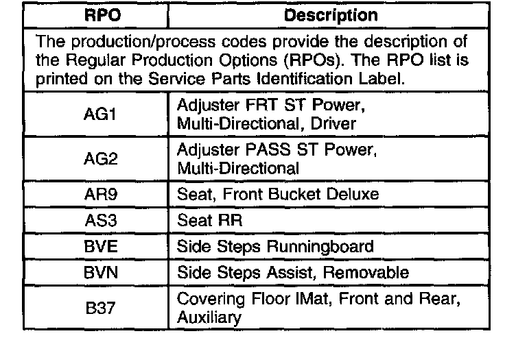 RPO Code List